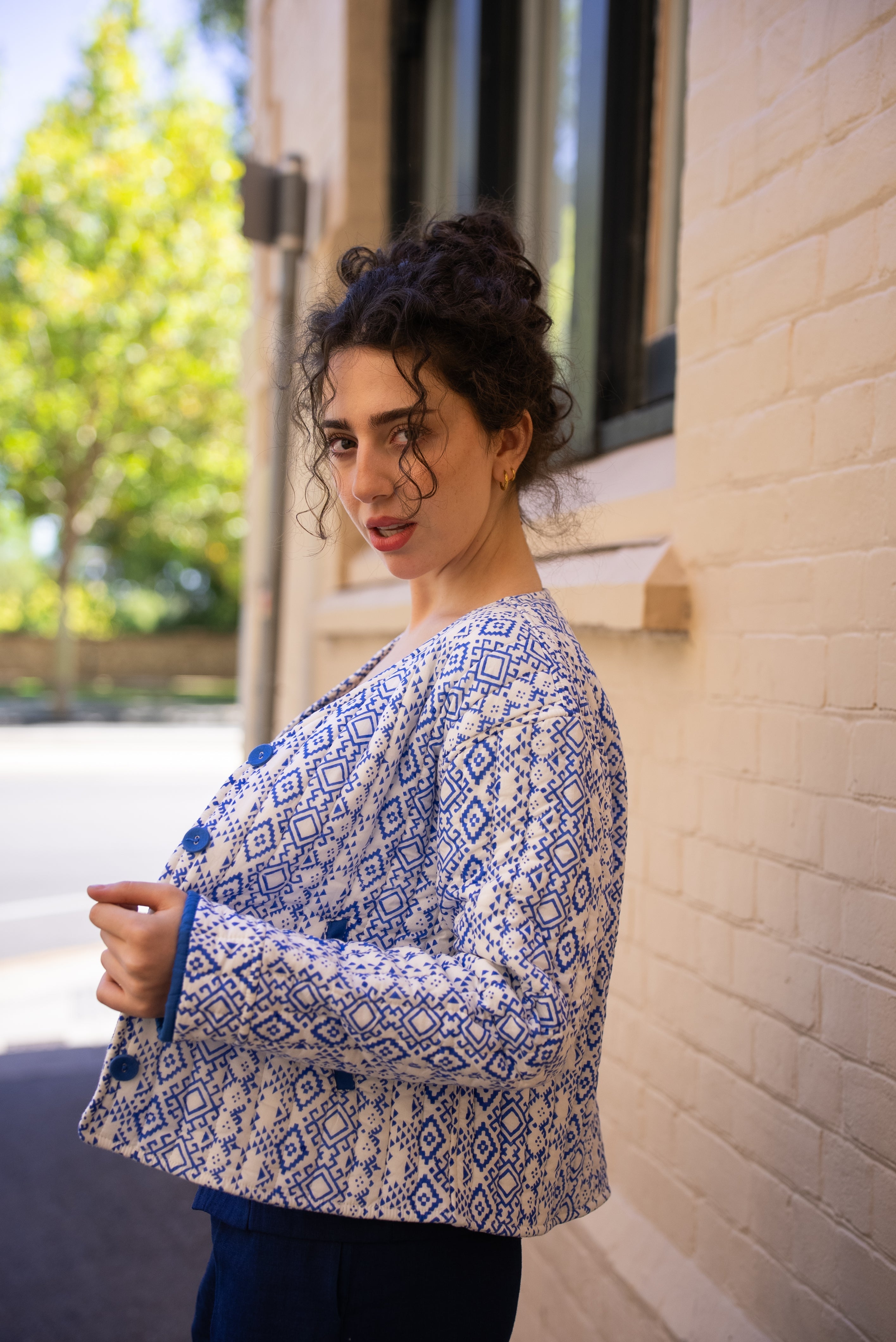 A travel-ready blend of tradition and modern style. The Sophia blouse features delicate Mughal-inspired block prints and a flattering fit in breathable cotton poplin. Paired with high-waisted, wide-leg pants in a lightweight, lined fabric—this set is elegance made effortless.