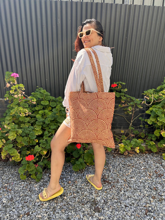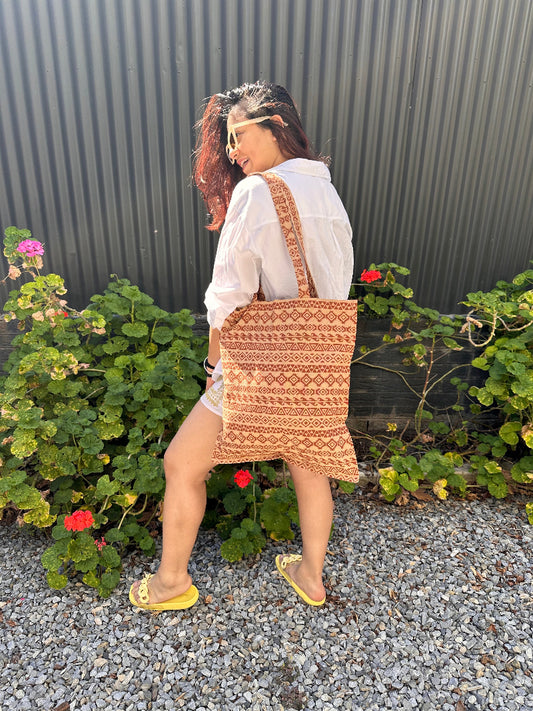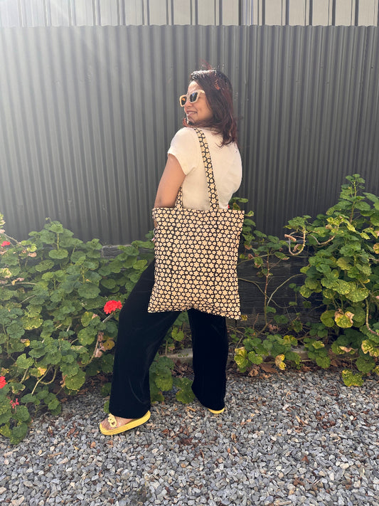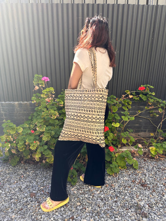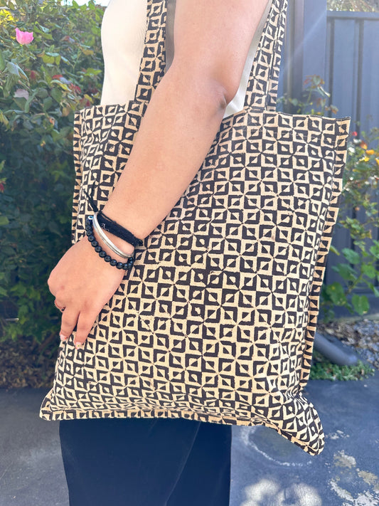 Star print Hand Block Printed Tote Bag- Kalamkari print