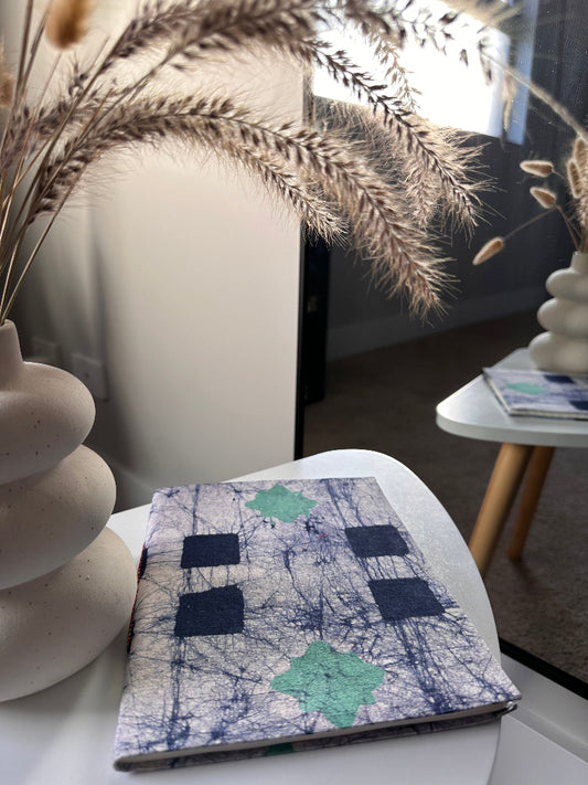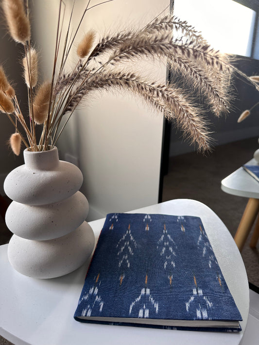 Indigo blue Ikat fabric cover handmade paper notebook (9*7 in)