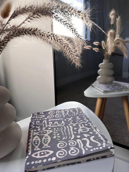 Cute fishes hand block print fabric cover handmade paper notebook (9*7 in)