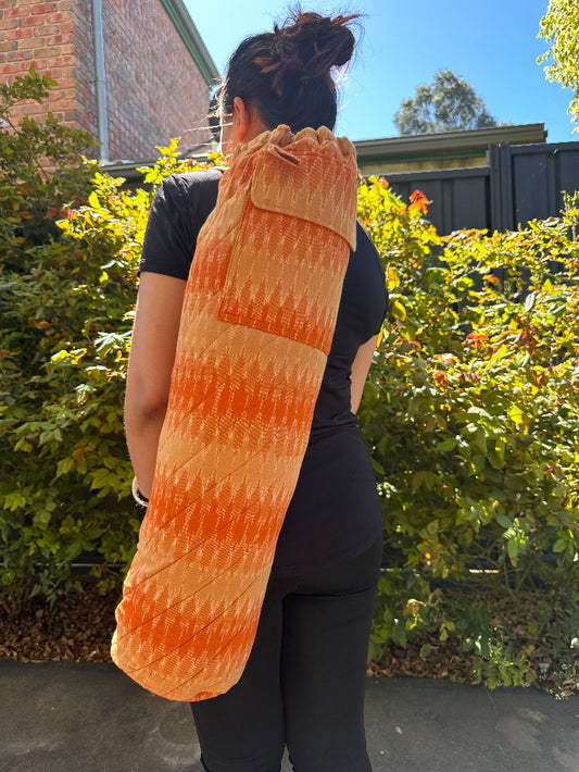 Mandarine Colour Quilted Yoga/Beach Mat Bag in Ikat Cotton