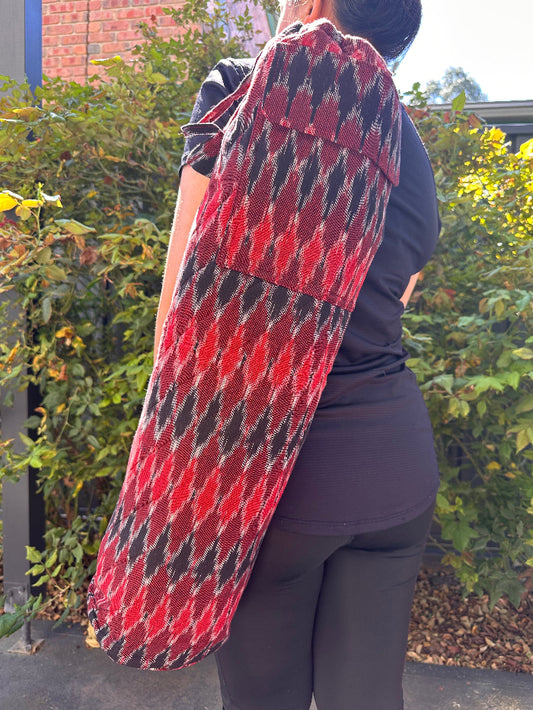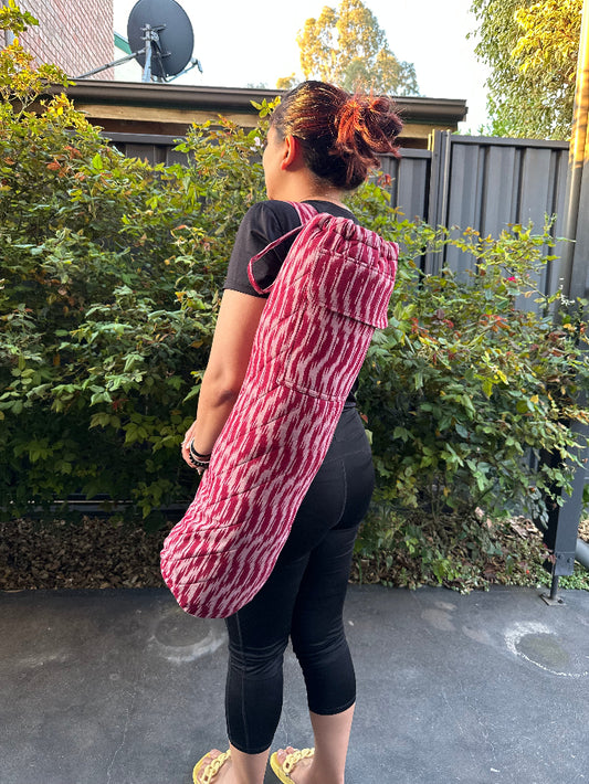 Maroon & White Ikat Cotton Quilted Yoga/Beach Mat Bag