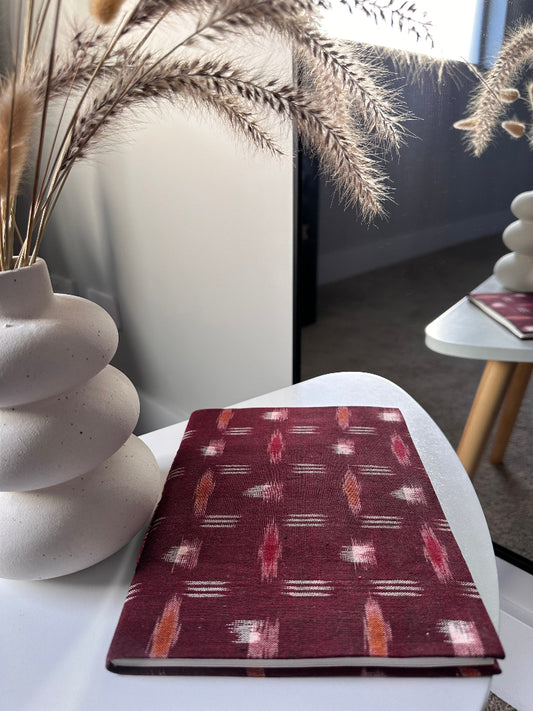 Merry red Ikat print fabric cover handmade paper notebook (9*7 in)