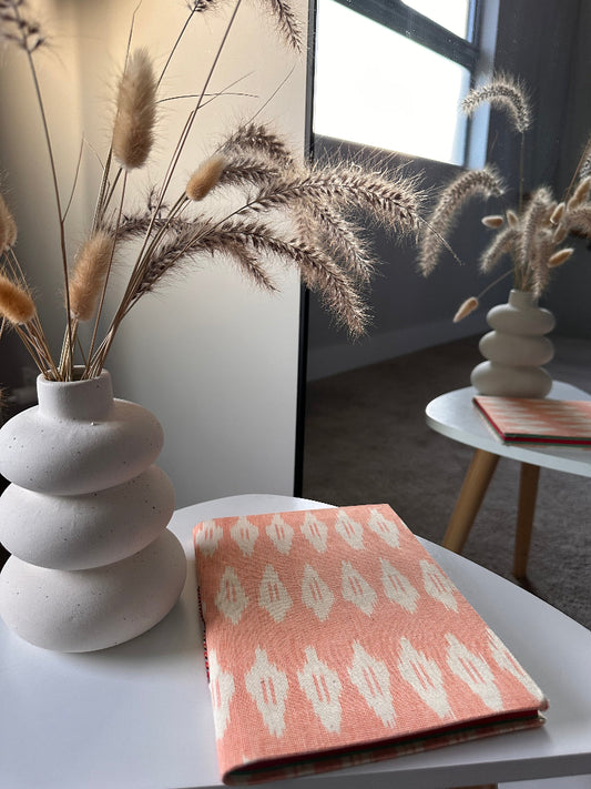 Peach ikat print fabric cover handmade paper notebook (9*7 in)
