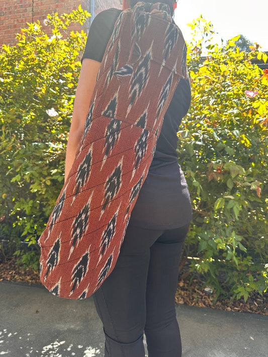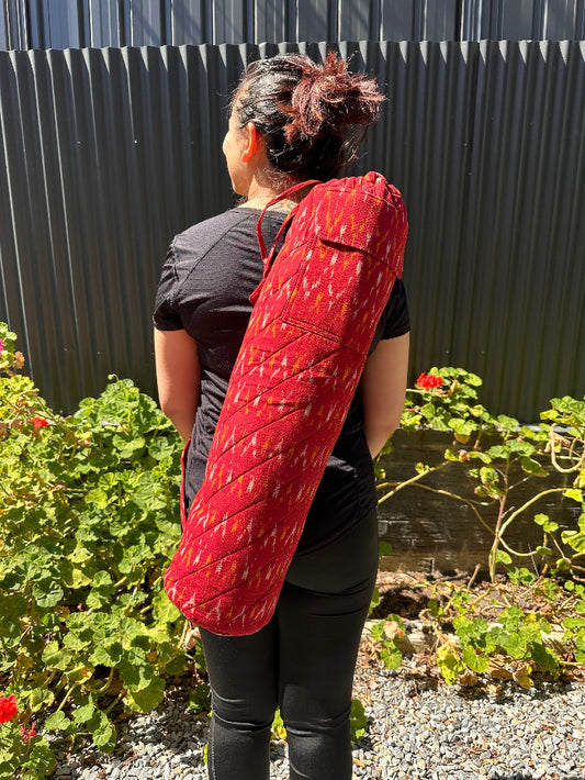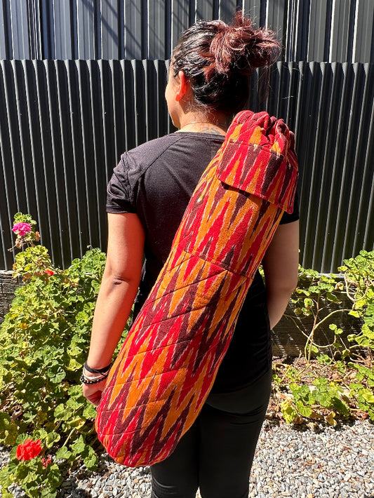 Chilli Red Ikat Cotton Quilted Yoga/Beach Mat Bag