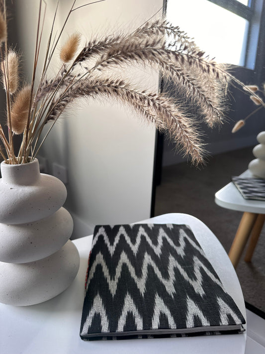 Black Ikat fabric cover handmade paper notebook (9*7 in)