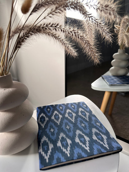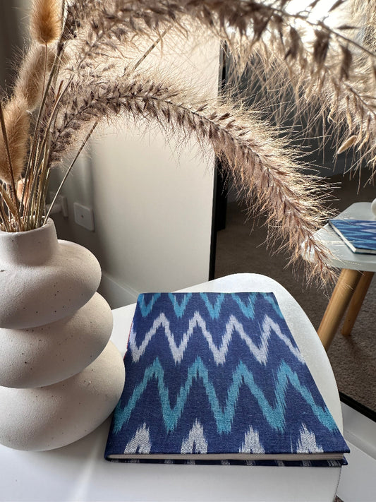 Blue Ikat fabric cover handmade paper notebook (9*7 in)