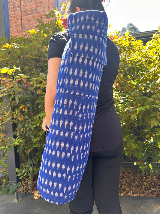 Blue Ikat Cotton Quilted Yoga/beach Mat Bag