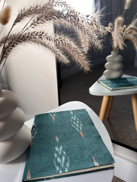Bold green Ikat fabric cover handmade paper notebook (9*7 in)