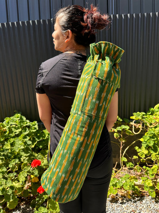 Green & Yellow Print Ikat Cotton Yoga/Beach Mat Bag