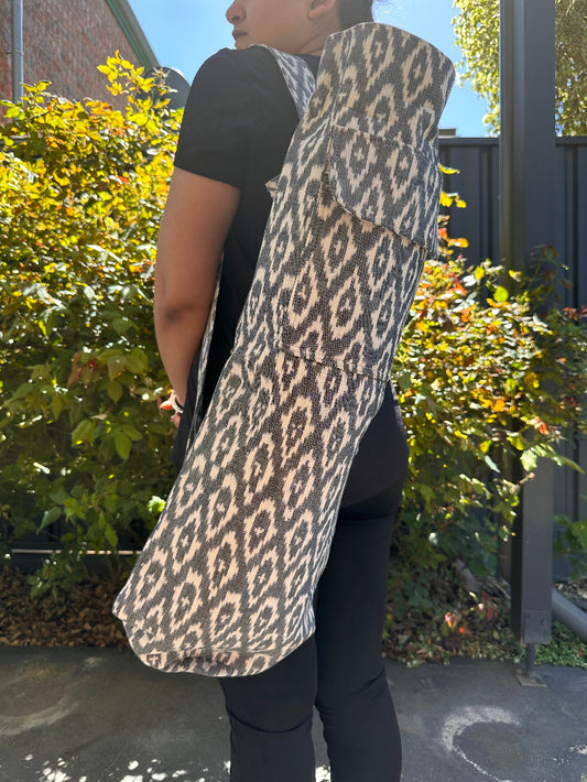 Grey & White Printed Ikat Cotton Yoga/Beach Mat Bag