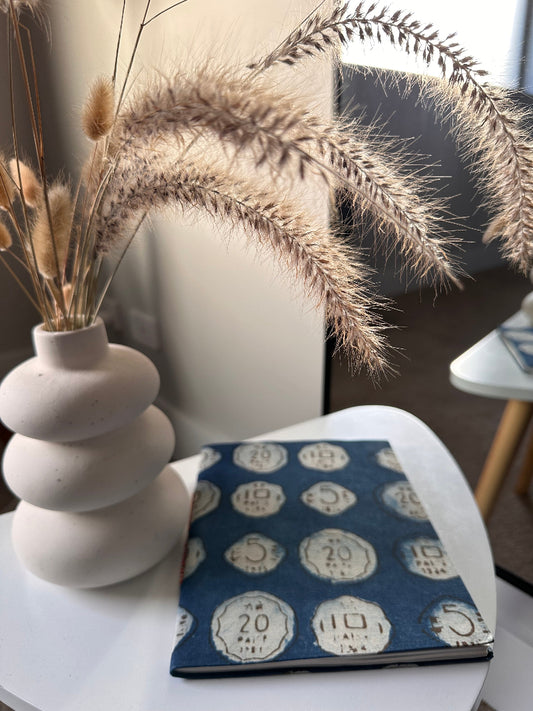 Indigo blue Ikat fabric cover handmade paper notebook (9*7 in)
